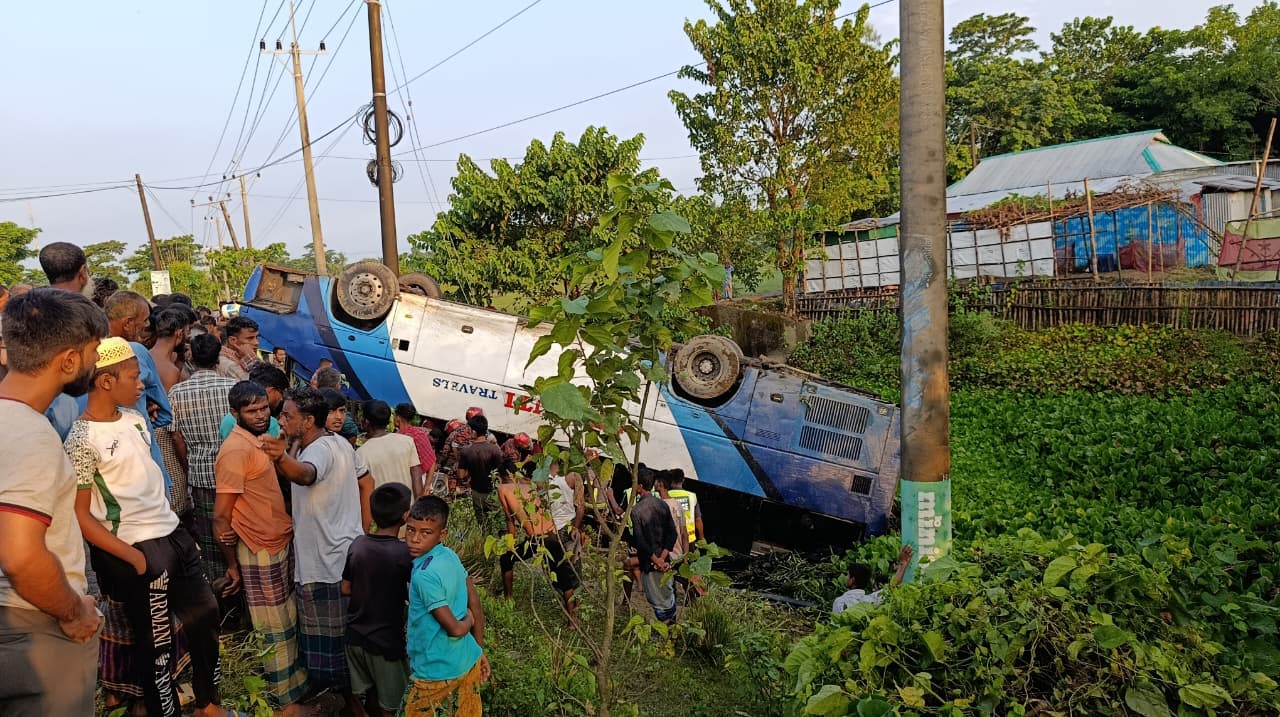 সুনামগঞ্জের পাগলা এলাকায় ঢাকাইয়া বাস উল্টে খাদে পড়ে মা ও মেয়ে ২জন নিহত, আহত ১০ জন