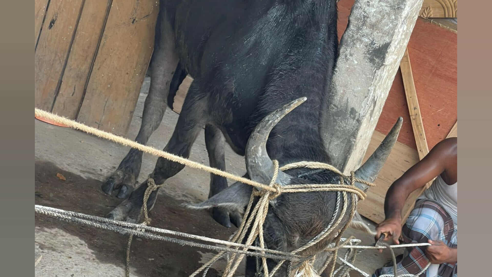 পরে সেখান থেকে বের হয়ে আব্দুস সালামের চায়ের স্টলে ঢুকে তান্ডব চালায়। এ সময় একটি শিশু সহ চারজন পথচারীকে মহিষটি আক্রমণ করে আহত করে। পরে ক্ষ্যাপা মহিষটি আব্দুল কাইয়ুমের মালিকানাধীম ফার্ণিচারের দোকানে ঢুকে পড়ে। তখন দোকানে থাকা রেডিমেইড আসবাবপত্র সহ কাঁচের গ্লাস ভাংচুর চালায়। এ সময় স্হানীয় জনতা দোকান থেকে বের হবার সময় কৌশলে মোটা দড়ি দিয়ে মহিষটিকে আটক করতে সক্ষম হয়।