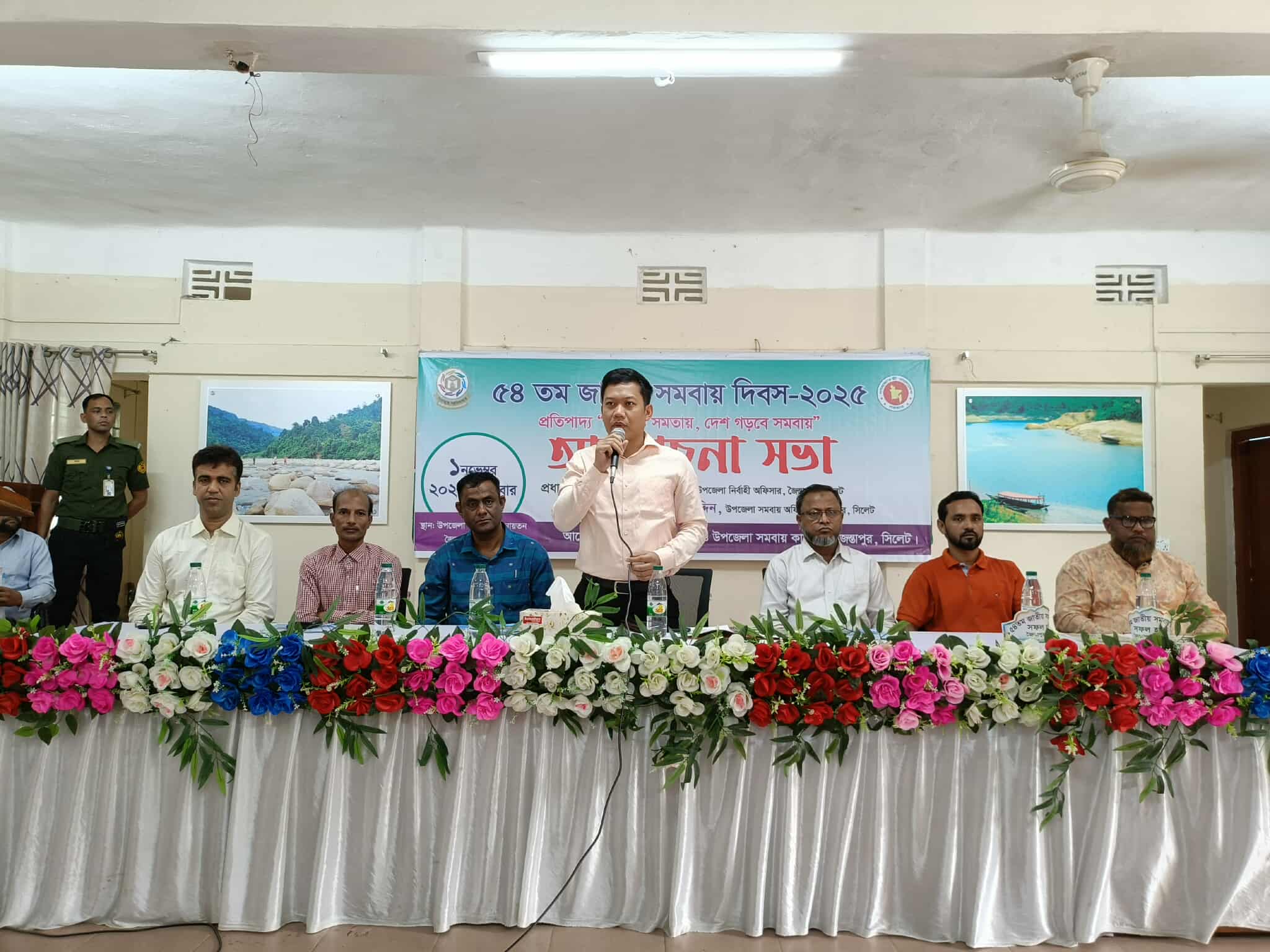 সিলেটের জৈন্তাপুর উপজেলায় ৫৪ তম জাতীয় সমবায় দিবস উপলক্ষে র্যালী ও আলোচনা সভা অনুষ্ঠিত হয়েছে। জৈন্তাপুর উপজেলা প্রশাসন ও উপজেলা সমবায় কার্যালয়ের আয়োজনে এই আলোচনা সভা অনুষ্ঠিত হয়েছে।