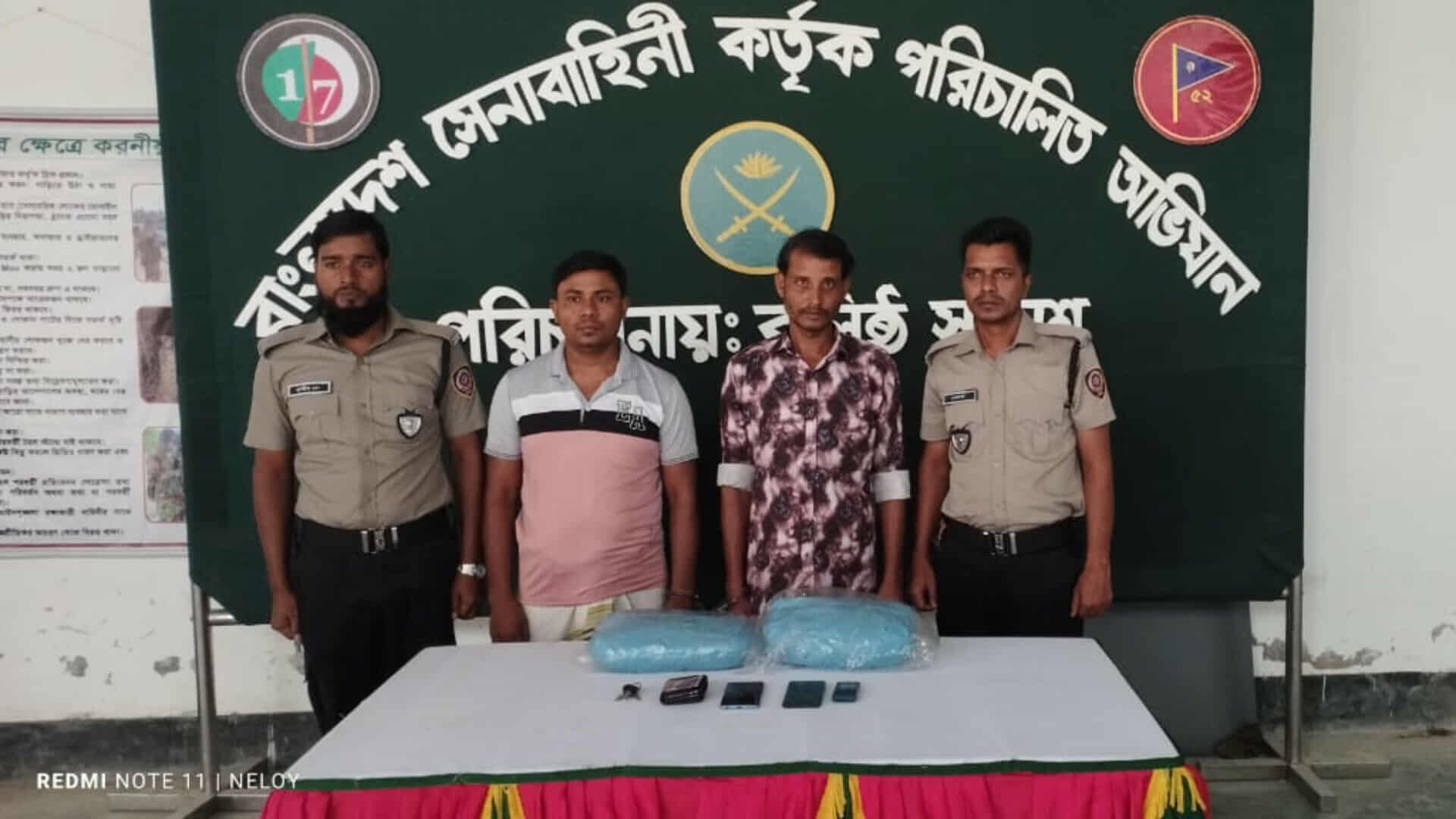 এ সময় তাদের নিকট হতে জব্দকৃত মালামালের ২ কেজি গাঁজা, নগদ অর্থ, ২টি অ্যান্ড্রয়েড ও ১টি বাটন ফোন সহ সিএনজি অটোরিকশা জব্দ করা হয়েছে। জব্দকৃত গাঁজার আনুমানিক মূল্য প্রায় ২০ হাজার টাকা সমপরিমাণ।