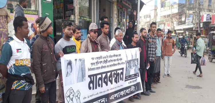 সুনামগঞ্জে সুমি হত্যার বিচারের দাবিতে নবীগঞ্জে মানববন্ধন